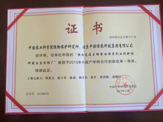 第九屆中國產(chǎn)學(xué)研合作創(chuàng)新大會在昆舉行 “作物免疫生物蛋白質(zhì)誘抗劑的創(chuàng)新性研發(fā)與應(yīng)用推廣”榮獲一等獎 ...全文分類[ 舊版新聞 ] 2016-09-06